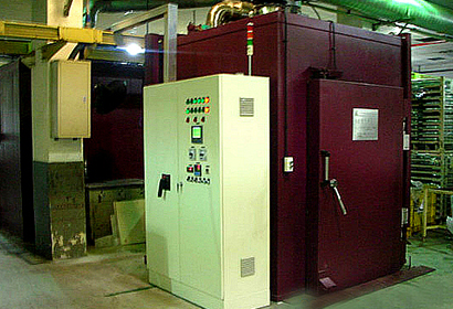 設(shè)備簡介:采用連續(xù)通過形式,對印石墨后的活塞進(jìn)行固化。爐內(nèi)采用空氣加熱方式,加熱溫度具有曲線追蹤。固化溫度為195 ± 5℃