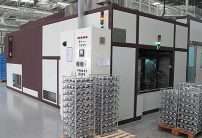 設備簡介:采用連續通過形式,對印石墨后的活塞進行固化。爐內采用空氣加熱方式,加熱溫度具有曲線追蹤。固化溫度為195 ± 5℃